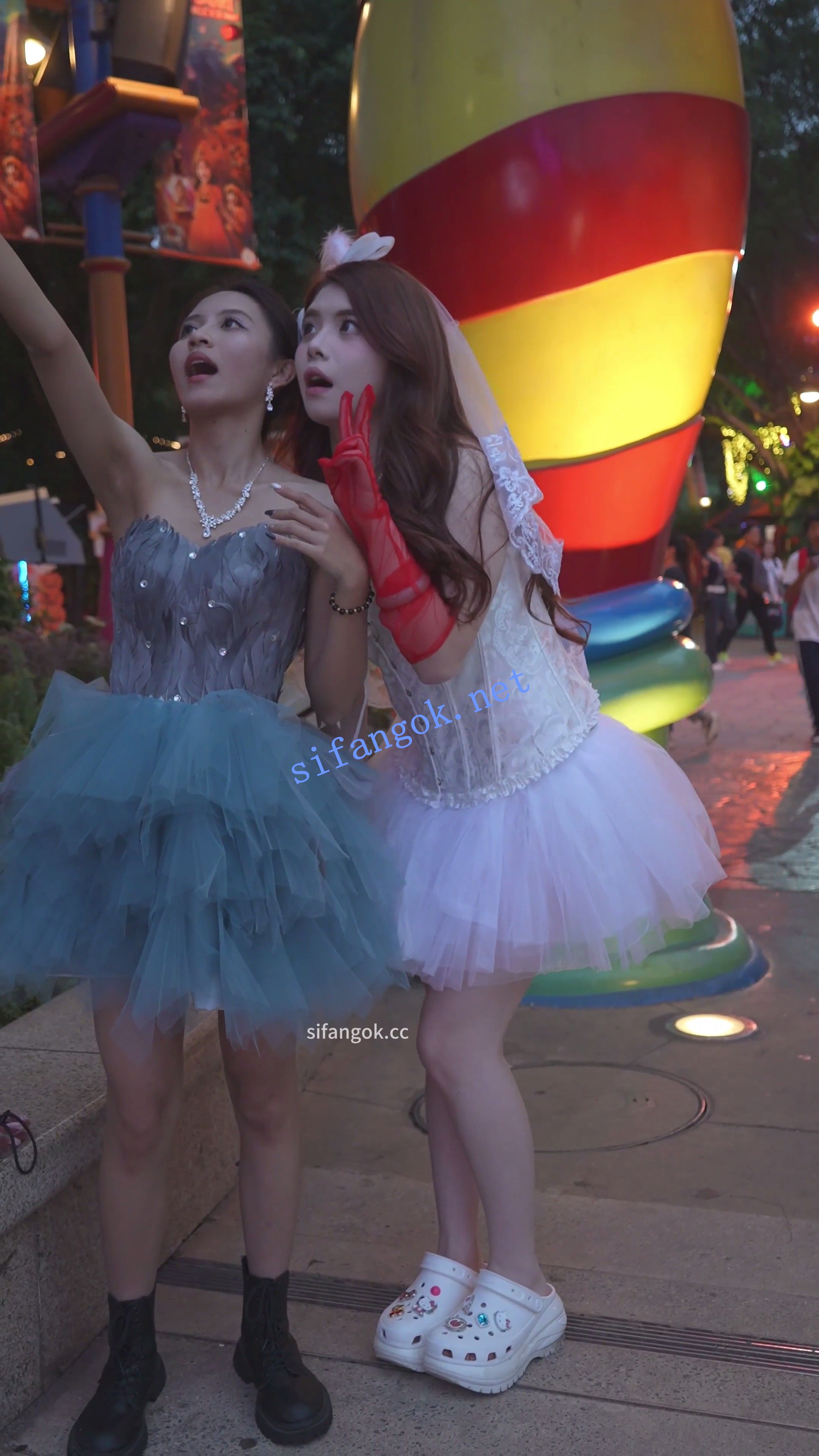 蕾丝婚纱裙美女看演唱会,跟拍CD开灯照亮浅黄内。。